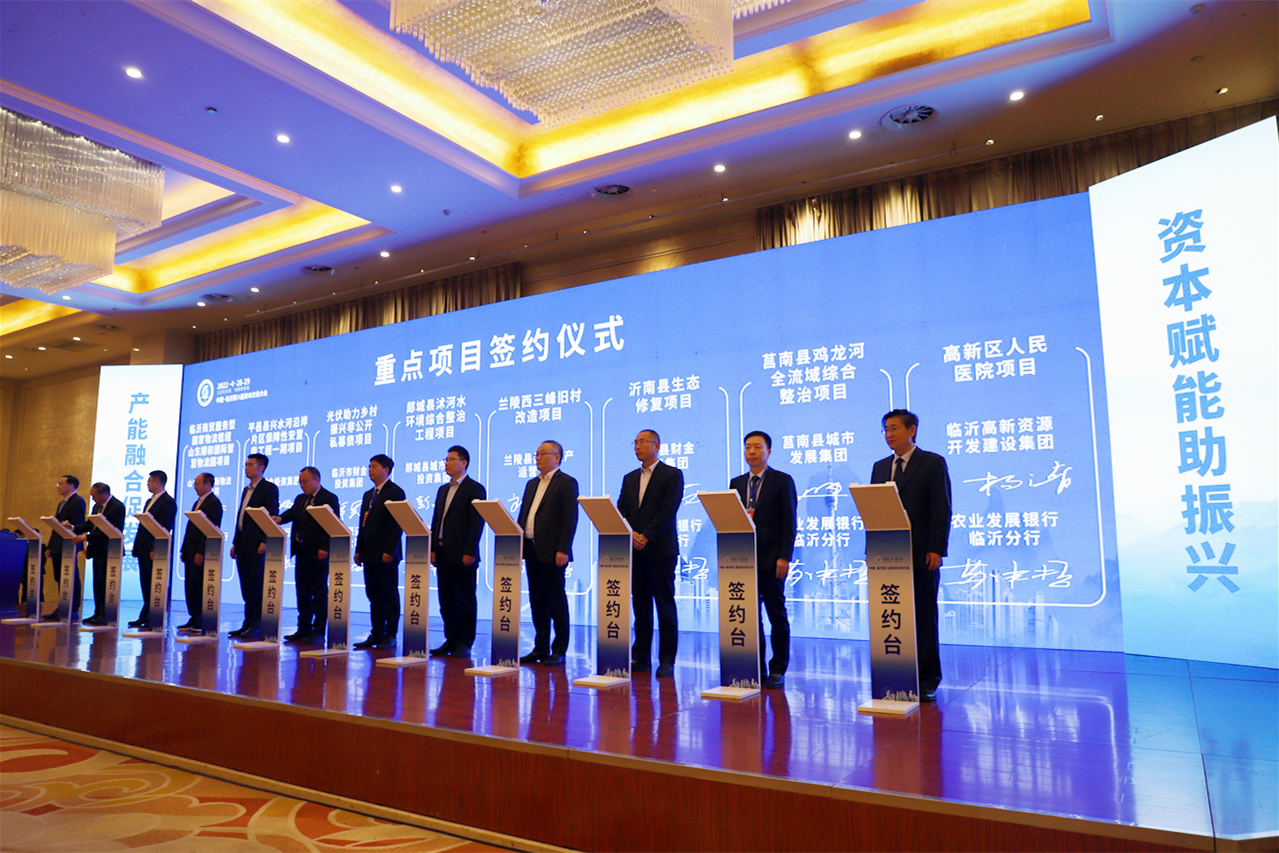 开幕式上,中共临沂市委书记王安德、山东省地方金融监管局局长刘晓、中泰证券股份有限公司董事长李峰分别就“立足新发展,构建新格局”的主题向大会致辞。作为本次大会18个重点建设项目之一,我区人民医院项目参加了现场签约,临沂高新资源开发建设集团与中国农业发展银行临沂市分行的代表参加了现场签约,签约贷款额度7.2亿元。