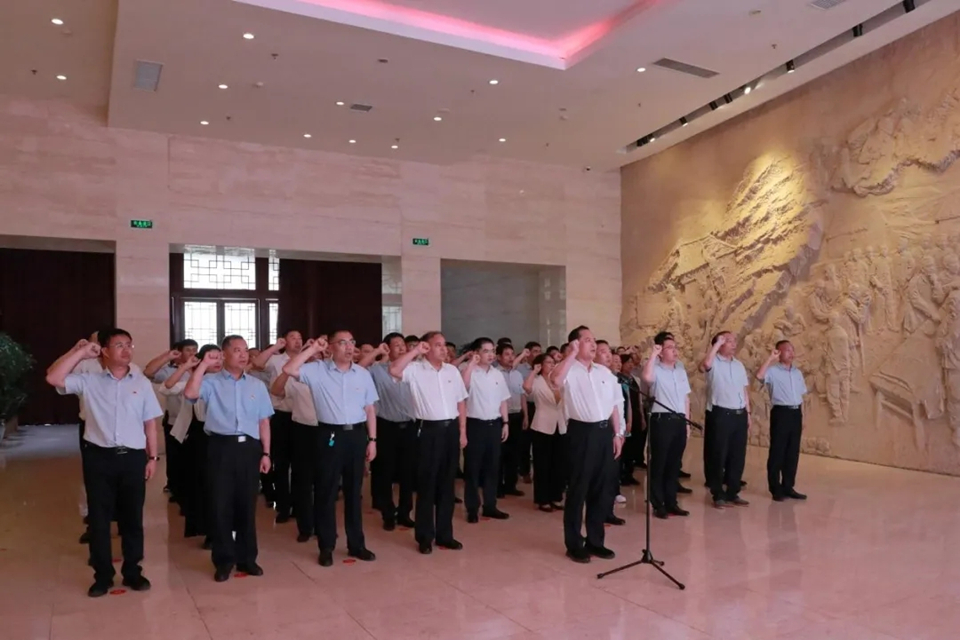 6月25日,在庆祝中国共产党成立100周年之际,高新区党工委书记、管委会主任徐仲圣带队到莒南县开展红色教育活动,并带领党员领导干部重温入党誓词。