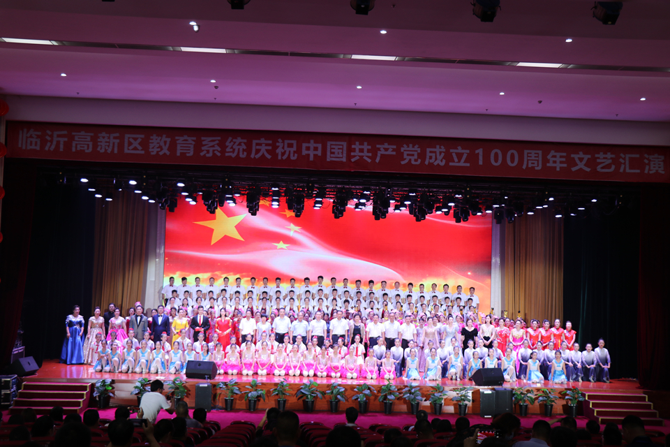 6月25日,由临沂高新区教育工作办公室主办的全区教育系统“奋斗百年路 启航新征程”庆祝中国共产党成立100周年文艺汇演在孔子学堂举行。区党工委副书记、组织部部长崔荣军,区管委会副主任朱立龙,上海华东师范大学附属紫竹小学校长张计蕾,临沂高新区高级中学(临沂一中西校区)执行校长周国红,临沂杏园教育集团总校长王德君等出席活动。