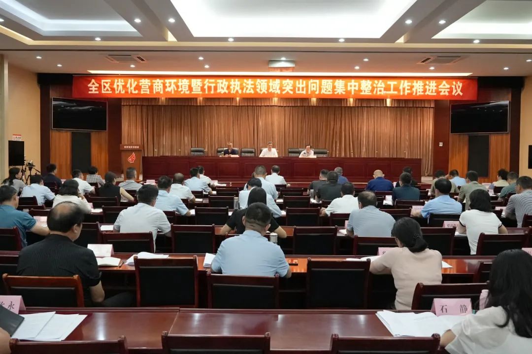 会议传达了全区优化营商环境“5+1”专项行动实施方案、行政执法领域突出问题集中整治方案和监督问责方案,党政办公室、纪检监察工委机关、政法工作办公室、科技创新办公室、行政审批服务局、安商服务办公室分别作了表态发言。
