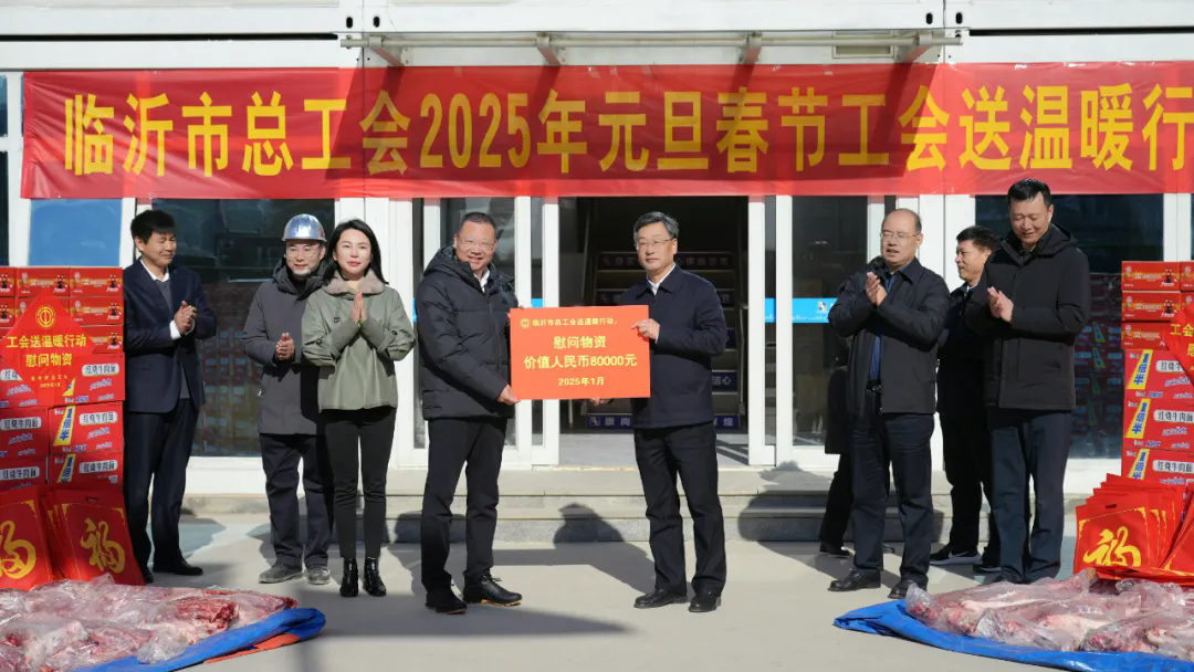 慰问组先后到卫康生物、城市职业学院建设项目看望慰问一线职工,为困难职工送去慰问金和慰问品,并为获得“全员创新企业”授牌,为“沂蒙工匠”“职工创新能手”颁发证书。